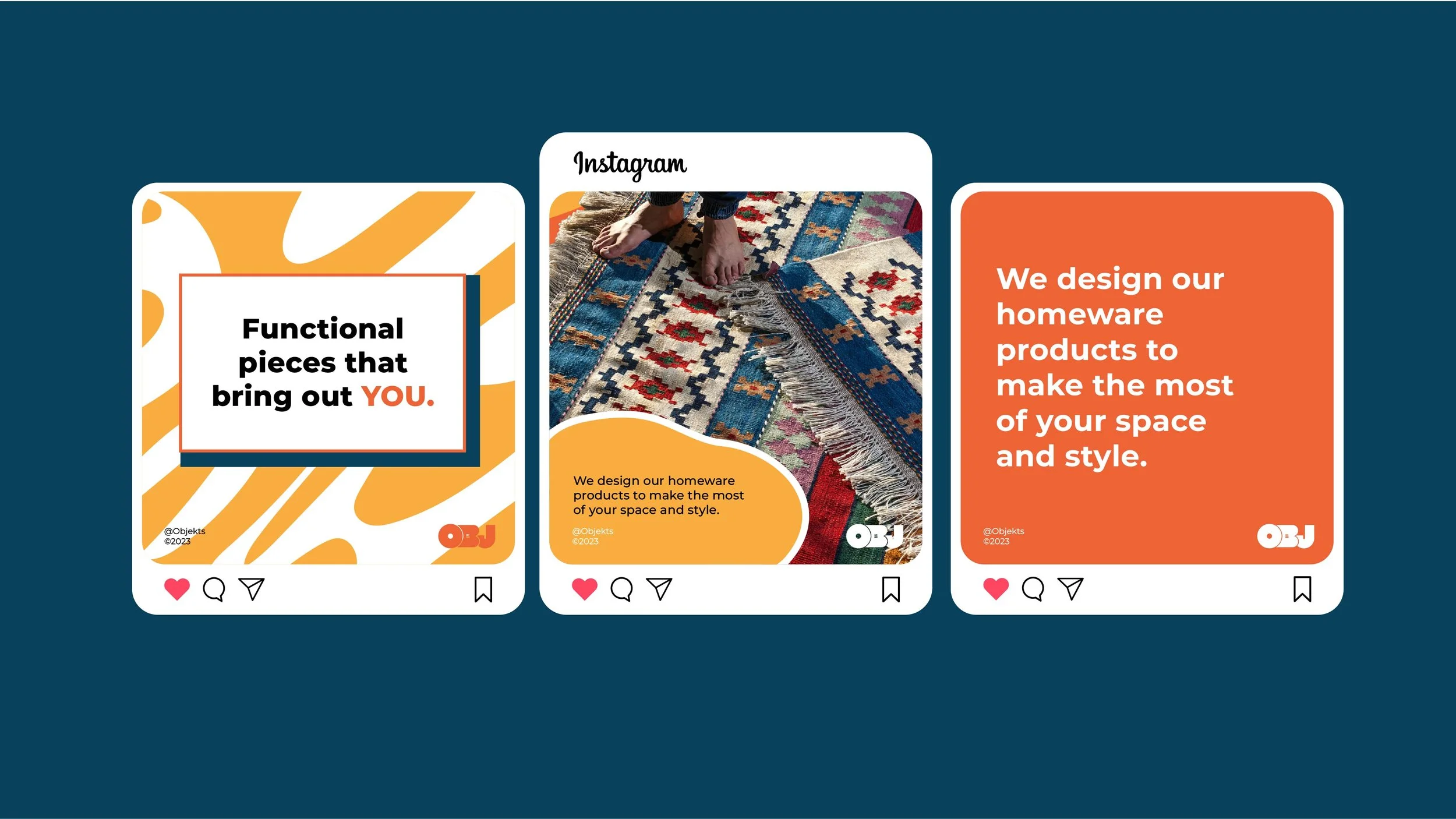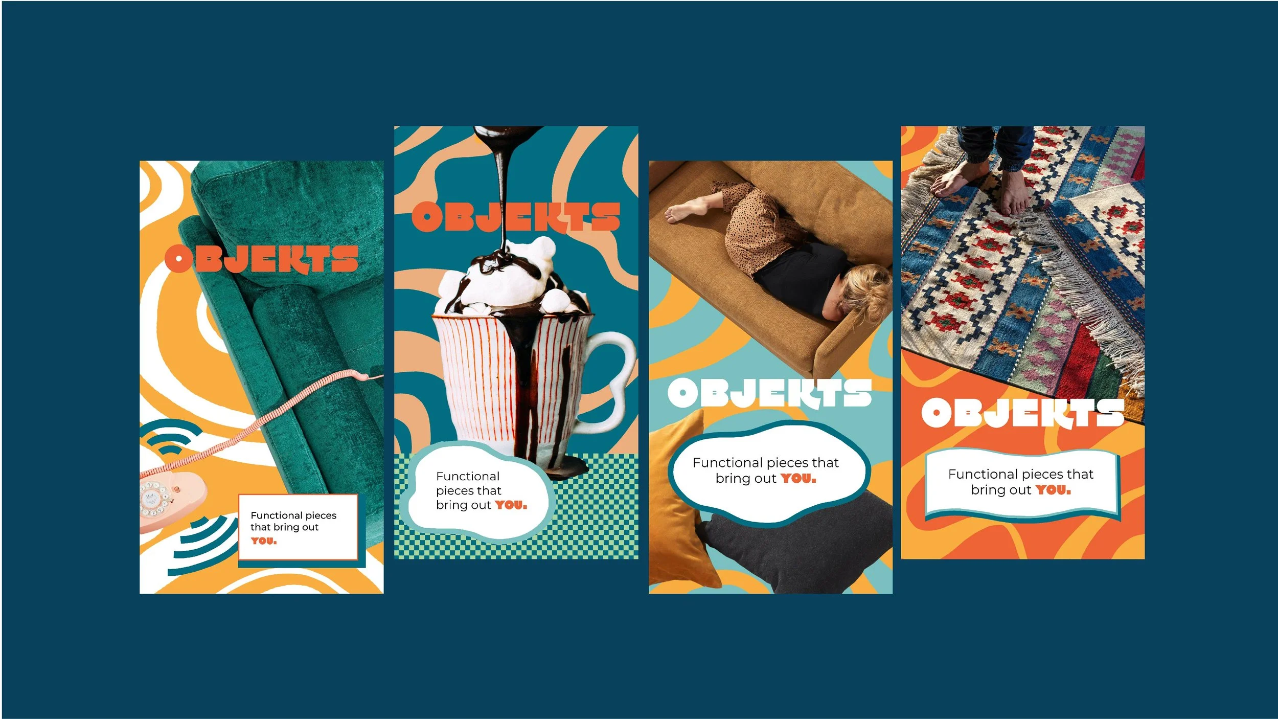 Looking to exercise my branding and web skills, I ran into Taylor Amy's creative design brief. The brief centered around Sammy and her homeware brand Objekt. Reading the brand story, I focused on creating a look that expressed 'bright,' 'screamed personality,' and 'functional.' Especially scream.